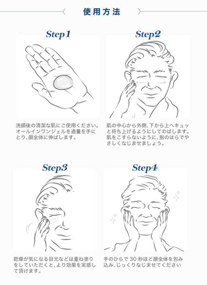 オールインワンジェルを適量を手にとり、顔全体に伸ばします。