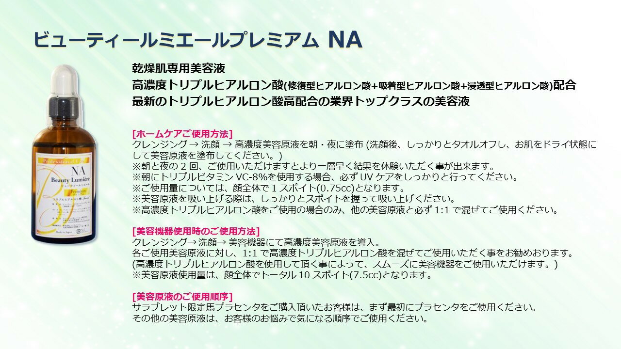広告文責:株式会社アイビビッド ご連絡先:042-316-4576 メーカー:シリスジャパン株式会社 生産国:日本 区分:化粧品美容液 原液 美容原液 高濃度 ヒアルロン酸 美肌 エステ ハリ 乾燥 美顔器 保湿 エイジングケアエレクトロポレーション対応 修復型 吸着型 浸透型 ビューティー ルミエール プレミアム 高濃度トリプルヒアルロン酸NA 【 送料無料 迅速発送 】 最新のトリプルヒアルロン酸高配合の業界トップクラスの美容液! 最新のトリプルヒアルロン酸高配合の業界トップクラスの美容液です! ★
