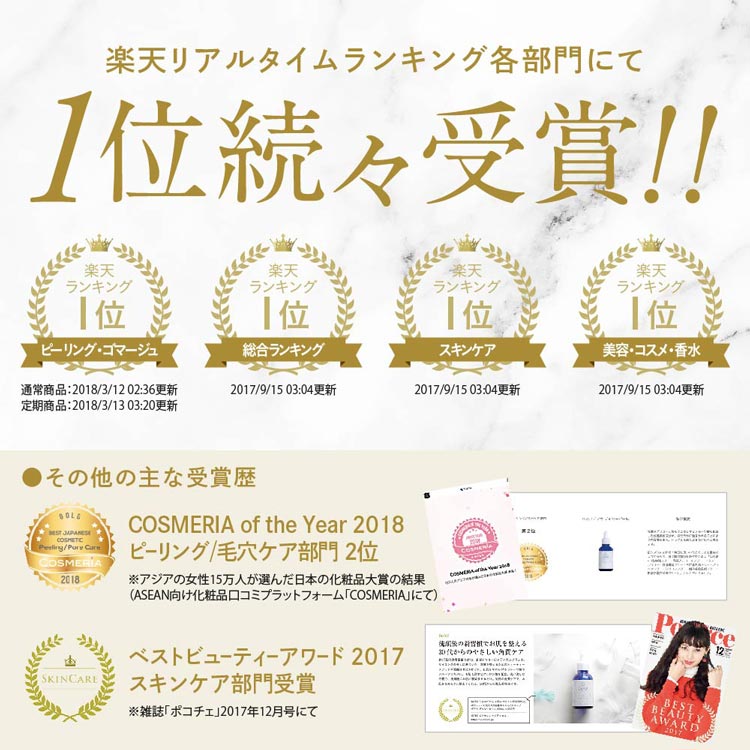 ※全ての人に刺激がないわけではありません 【こんな方におすすめ】 ・化粧のノリが悪い、どんな化粧品を使っても実感のない方 ・肌のごわつき※が気になる方 ・キメの乱れが気になる方 ・繰り返し起こる肌荒れが気になる方 (※古い角質が蓄積し、肌表面が固くなっている状態) 使用方法 洗顔後、手のひらに適量を取り、顔全体または体の気になる部分になじませてください。
