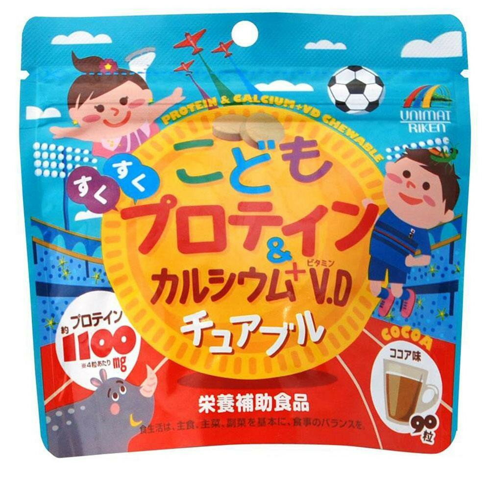 【代引き・同梱不可】ユニマットリケン こどもプロテイン&カルシウム+V.Dチュアフ?ル ココア味 90g(1g×90粒)