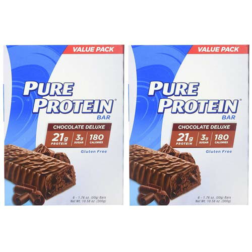 Pure Protein ピュアプロテイン・バー・Chocolate Deluxe(チョコレートデラックス) 50g×6本 2箱セット(プロテイン21g 180cal)